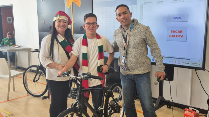 Uno de los usuarios de la DIVRI ganador de una bicicleta en el bingo.