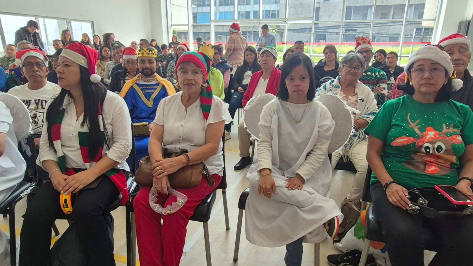 Los beneficiarios mayores de 18 años con discapacidad, de uniformados activos y veteranos de la Fuerza Pública, mostraron sus dotes histriónicos en la puesta en escena del pesebre en vivo, donde se dio lectura al primer día de la novena, con escenificación de la virgen María, San José, los reyes magos y hasta el arcángel Gabriel.